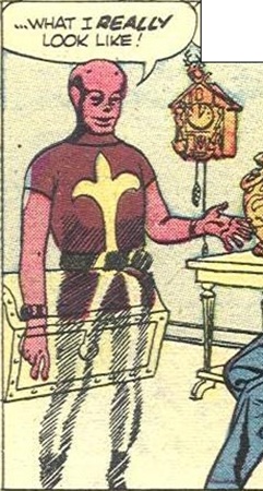 In this 4-page story--The Ghost Came C.O.D.--Goad was the protagonist. The Martian didn't even appear in human form until the last three panels of page 3, and the two panels above are the only ones with him in his true form; consequently, his powers were never explained in detail--he could have been a shapeshifter, but I believe that he was somewhat like the extradimensional Possessors, and that he used humans as host-bodies for his mental essence to inhabit until they died.