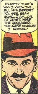 A greedy and deceptive elderly man, he was the owner of a run-down antique shop. Since he rarely had any customers, he came up with a scheme to supplement his income: after combing through the newspaper's obituary pages, Goad would send phony sales invoices to the addresses of the deceased--he figured that in their time of mourning, the widows and relatives of the deceased individuals would simply pay the bills without question. In one instance, Goad sent a fake invoice for Wedgwood China to the recently deceased Andrew J. Merkel; when Merkel's grief-stricken widow received it, she didn't remember her husband ever mentioning the purchase, but she sent Goad a check anyway just to get it off her mind. Occasionally, when he received no response from his fake invoices, the unscrupulous Goad would next send letters threatening lawsuits--since he possessed the "evidence" of the falsified invoices, he could easily win any legal judgements and ultimately be paid from the deceased's estate. |