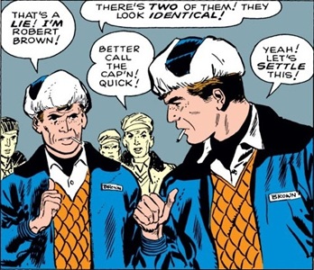 Tales of Suspense I#22/2, p3, pan6 (Robert Brown and Martian impersonating him [but which is which?])