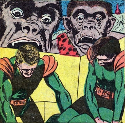 This 4-page story--The Maze!--was done with a surprise-ending which revealed that the astronauts shared the same plight as the ants; the final two story-panels above were all we ever saw of these Martians--all that was depicted was their faces, so next to nothing was revealed about them.