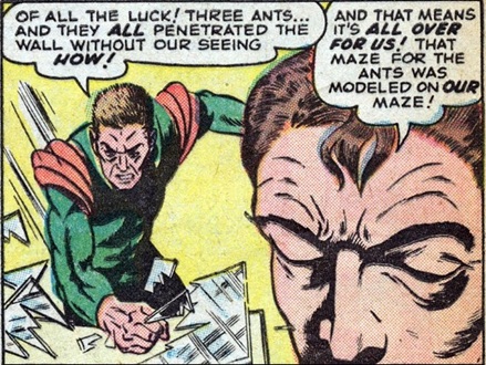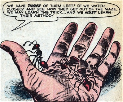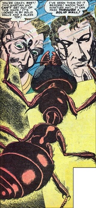 Uncanny Tales I#28/3, p2, pan7 (one of the three Martian ants passes through solid wall of maze; Bret Hoff and Dan Squire [background])
