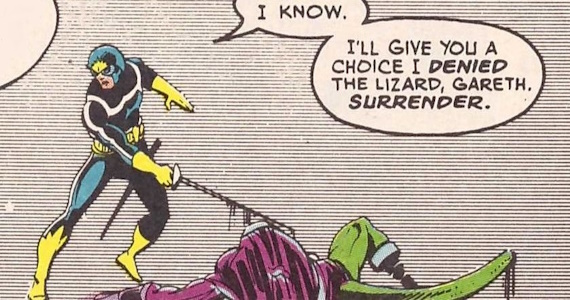 (Marvel Spotlight II#6 (fb)) - These events were (or may have been) remotely observed by Ragnar, an Ariguan scientist who disagreed with the senseless strife that his people's war was causing. (Marvel Preview#11 (fb) - BTS) - Gareth may (or may not) have been informed that both targets