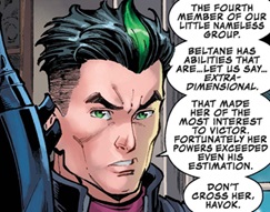 large wooden X, Samhain taunted X-Factor with their captive. Havok