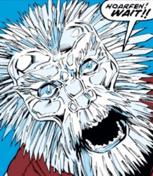 (Incredible Hulk II#423) - Siingard admonished the Hoarfen for eating Hulk and Vali, who was under his protection. The Hoarfen didn't take so kindly to the critique and angrily lashed out at Siingard, who landed in front of Fandral.