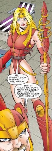 After Marco had discovered that Thor had lost his superhuman abilities, he decided to make him his target. Estelle followed Marco blindly when he came up with a plan to become an Avenger by killing one of their active members and rented a costume and took the codename Spiral.