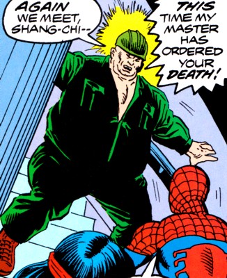 (Master of Kung Fu I#17) - Tak asked Fu Manchu for another shot to battle Fu's son Shang-Chi, but Fu denied him the chance because Shang-Chi was a Living Weapon and Tak just a wrestler.