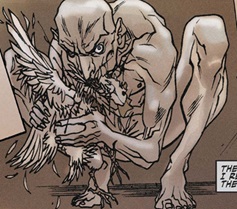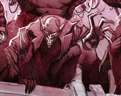 (Spider-Man Noir I#1 (fb) - BTS) - Over a period of years with the freakshow, Toomes' humanity began to slip and he soon left the circus to join the mob led by Norman Osborn, better known as the Goblin. Shortly after, the Vulture developed a taste for human meat.