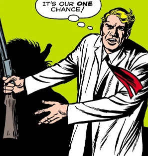 Amazing Adventures I#1/1, p12, pan6 (electromagnetic signal device on Paul Ramsey's wrist; Ramsey thinking that he can't defend himself for killing "John Carter" (actually Torr))