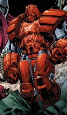 (Iron Man/Thor#1 (fb) - BTS) - Crimson Dynamo came under the influence of Diablo and had his armor enhanced with alchemy while working for him and the High Evolutionary.