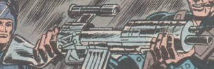 Mindstorm's rifle was filled with frozen chemical darts that melted into the target's blood stream. The darts were filled with a drug that went for the brain, turned the victim slowly into a raging maniac and killed him within a few hours. The weapon's ammunition magazine was secured by an explosive lock to stop anybody from the chance of creating an antidote for the drug. --Marvel Super-Heroes III#4 images: