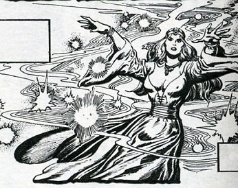 History: (Savage Sword of Conan#29 (fb)) - The baby who would have become the Mother of All the Priestess, was chosen in her day of birth to become a Priestess, she was the Sacred Child. Her "sisters" taught her the magic, and she grew in the Monastery, believing that her magic power was great, until the age of 20 years. She became the High Priestess.