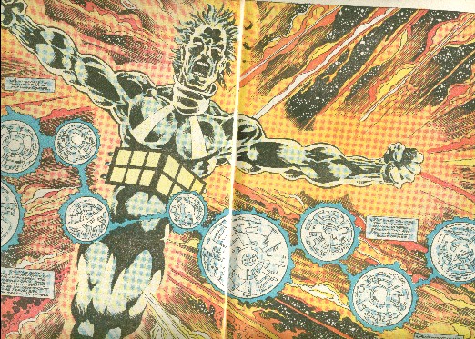 (Micronauts I#35 (fb)) - The Sword in the Star transformed Wayfinder into the first Time Traveler, and he used his new power to bind the Whirldemons so they could not escape. By the power of the Enigma Force, the Microverse was brought into being, and it was populated by Wanderers.