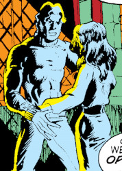 (Marvel Spotlight I#4) - That same day Jack Russell came to the island looking for the Darkhold (which he believed might be hidden within the castle), he was taken prisoner by Blackgar's hireling Garth. From atop a balcony in his house Miles witnessed the newcomer's arrival, and he and Marlene went down to the docks to greet him.