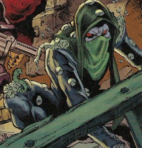 (Nightstalkers#11) - Rotwrap took out Jeb Harlow with Innards help when their team successfully stole Suze Harlow's body from her grave.