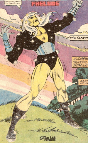 (Defenders I#34 (fb) - BTS) - Nebulon was thrown through existence until he landed on the world of the scientist-philosopher Ludberdites. He came to adopt their credo that higher beings in the universe had an obligation to improve the lives of their inferiors.