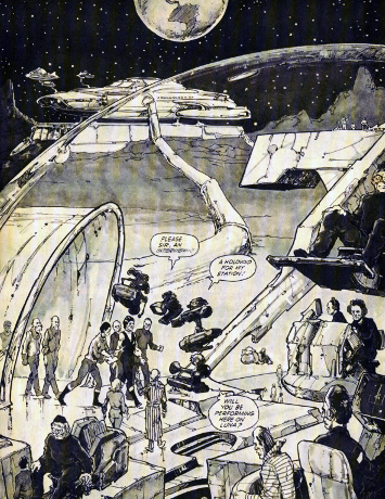 atmosphere banks. Transparent tubeways connected Luna's domes, and huge rampways