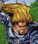(Warstrike#3 (fb) - BTS) - Quixote was the protector of a tribe of natives in the Brazilian rain forest, and stood guard over what was actually a skeleton and which was worshiped by the villagers. While on patrol, Quixote spotted Warstrike, who was hunting Colonel Snowden, and mistook him for a demon to be slain.