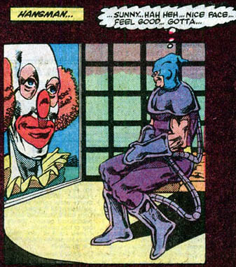 Hangman was kidnapped by Locksmith and Tick-Tock. They imprisoned him