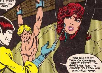 Days later, on the planet Sparta, after the conspiracy behind the slavers had been smashed, Emperor Jason noticed that something seemed to be bothering Sandy. When he asked her was it was, she replied, "I feel like a mark in this outfit. Gi' me a tunic an' pants and some pockets to pick, then I'll be happy." The emperor replied that he knew how she felt.