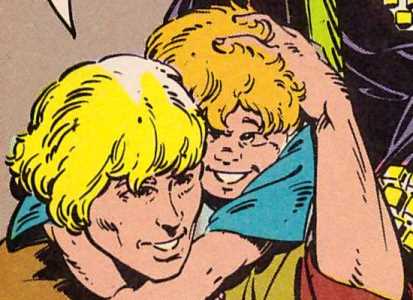 (Starlord, the Special Edition#1) - On Jubilee Night, the last night of the year-long celebration of the hundred-year anniversary of the coronation of Emperor Jason of Sparta, the three children sneaked up on their father and grandfather as they talked and then pounced, swiftly bringing their prey to the floor. Almost instantly, their mother rushed in, demanding to know what her children were doing but they ignored her, with Rhys and Alain continuing to wrestle their father while Robyn remained on her grandfather's back, pinning him to the floor. Rhys announced that they were winning but Alain complained that it was "No fair" because Daddy was tickling him. Kip implored his wife to help them but Emperor Jason, while asking Robyn to not pull his hair, said that he knew when he was beaten and surrendered. Sandy admitted that she "would sooner face an Ariguan battle fleet than these three terrors" and Kip agreed, then asked if they weren't supposed to be in bed. Hearing this, Rhys protested that it was Jubilee Night and not fair and he pleaded with Grandfather to let them stay up. Rhys (or Robyn) asked the adults to tell them a story and Alain asked Grandfather for the story about how he and Father defeated the Ariguans. Robyn objected, saying that they had heard that one and asked Momma to tell them about the new worlds she had discovered beyond the rim. At that point, Kip offered to tell them a very special story to mark that very special night. It was the story of how their mother and grandfather and he first met, and of the man who had brought them together, a man whose name was Peter Jason Quill but to them -- and the wide, wonderful universe -- he was known as Star-Lord.