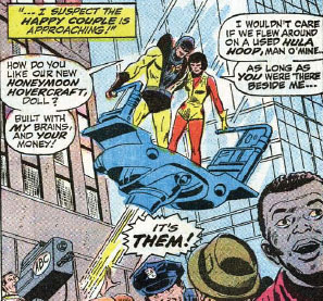 Avengers I#60, p3, pan5 (Yellowjacket & Wasp onboard the