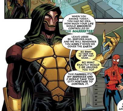 You may note that the Masssster ssshares the sssignature sssibiliance of ssso many sssnake-themed charactersss. He may actually be "the Master", but Deadpool called him the Masssster, ssso I'm going with that.