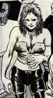 The image to the right comes from the cover, by a different artist. The woman at the top is supposed to be Razor, but her face, hair style, and eyes (obviously, she's not wearing a monocle or cybernetic eye deal) look fairly different. Artistic license, I'd guess.
