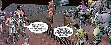 (Civil War: X-Men#2 - BTS) - Arclight, Scalphunter and the other escapees arrived at a base in the Nevada Desert that became their new home. Unbeknownst to them Bishop was tasked by O+N+E directors Val Cooper and General Lazer to find them. Bishop recruited Sabra and the British size-changing hero Micromax to help him.