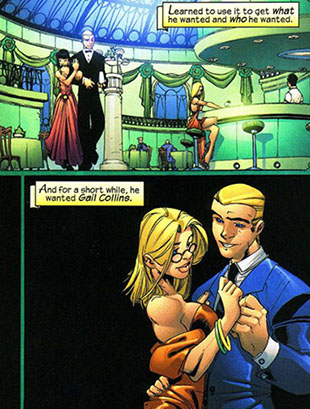 (New Mutants II#11 (fb)) - One night at a restaurant, Garrison spotted Gail Collins and felt an instant attraction. He influenced her with his powers, making Gail fall in "love" with him. The two remained together for an unrevealed amount of time until Collins became pregnant which broke the mental control he had over her. Now in control of herself, Collins left while Garrison was sleeping, both unaware she was expecting.