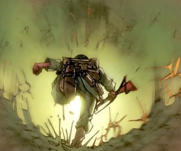 All-Winners Squad: Band of Heroes#2, p13, pan6 (young Albert Jones in Guadacanal, running to Japanese machine gun nest)