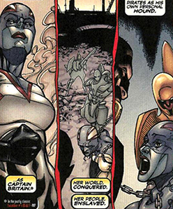 Occupation: Slave, Killian's personal hound; former Captain Britain co-defender of her world with Lockheed, pirate, freedom fighter