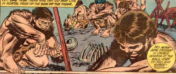 (Ka-Zar the Savage#24/2 (fb)) - The Man-Apes captured a member of their bitter enemies, the local warring Lukanura tribe, bitter enemies of the Man-Apes. Maa-Gor guided the still-dazed Ka-Zar to kill the prisoner.