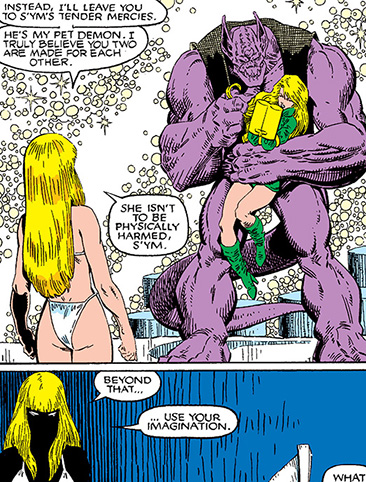 S'ym watched how his master Belasco manipulated Cat and Illyana back to