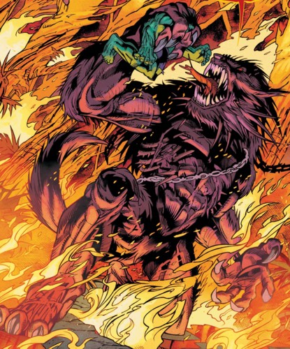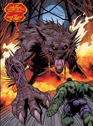 |   | BTS - He got better or just went home. (What was I thinking? He is a demon and probably just ended up back in his personal little portion of Hell!) (Incredible Hulk VI#20) - Members of Lycana's pack of Skinwalkers made their way below Las Vegas to summon Vârcolac by sacrificing one of their own by kicking him into a hole that led was apparently a portal to Vârcolac's portion of Hell. They pleaded with Vârcolac to retrieve the Godskin (Lycana's pelt) to them and take revenge on those that had stolen it. Vârcolac answered their summon. One of the Skinwalkers tracked down Hulk and was literally stomped on. The ground opened up beneath the Skinwalker and Vârcolac rose from it. He made it clear that he didn't care for Lycana's pack, but was only there for to spill enough blood to drown the gods and the blood he wanted was Hulk's. (Incredible Hulk VI#21) - Vârcolac craved the blood of Hulk, Lycana and eventually the gods. Surrounded by fire he sliced through Hulk's skin, picked him up like a doll and then devoured him. It didn't take long for Hulk to rip his way through Vârcolac's throat on his way down the wolf demon's gullet and then take the fight to him. Hulk rained punches on Vârcolac's skull and jumped at him repeatedly. He ripped off Vârcolac's lower jaw and then knocked him out by pulling him by his tongue to the ground. Werewolf by Night warned Hulk that Vârcolac was not dead, but Hulk wouldn't listen and tried to close the gap in the ground that led to Vârcolac's realm. It opened up again before it closed completely and Hulk fell into Vârcolac's dimension where Vârcolac explained to him that this is the place where Lycana's vessel Charlie would end up because all wolf spawn's souls and their blood belonged to Vârcolac and eternal torment in his realm was their fate. He promised Hulk that there would be a place for him as well, but Charlie, in her Skinwalker form, caught Hulk and flew back to Earth with Hulk before the portal closed. Vârcolac promised them that they would soon see his realm again. |