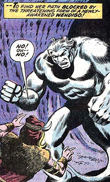 (Monsters Unleashed#9/5 (fb)) - Four months after transforming into the Wendigo, Baptiste wandered the frozen Canadian wasteland in the dead of winter. He happened upon a small town that he would occasionally enter to claim a new victim, returning a few days later to find another human being to eat. He claimed the life of one Hercule Maris whose bullets didn't even faze the creature.