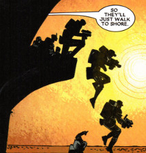 (Black Panther IV#5) - Wishing to avoid the conflict of entering foreign territory, the US military activated their zombie cyborgs and sent them overboard, to walk along the sea floor to the shore.