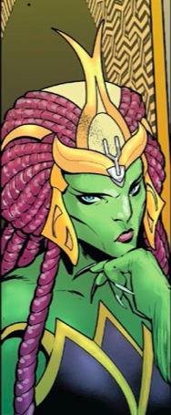 (Fantastic Four I#577 (fb) - BTS) - Aladi Ko Eke rose to power as the Queen of the Fifth Caste, or the Moord Council, of the Badoon Inhumans. Her subjects numbered as 17.250 (9,250 males, 8000 females).