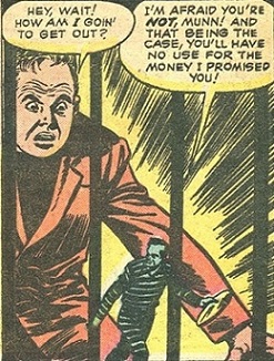 The next day, Barker secretly got a visitor in his cell--the shrunken Archie Munn, whose reduced size allowed him to easily slip past the cell-bars and carry the disc to Barker. But when the slow-witted Munn handed the disc to Barker, their situations were reversed--Munn returned to his normal height and was trapped in the cell, while Barker shrank and fled from the prison.