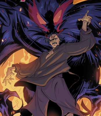 (Ghost Rider III#90) - As Blackheart used Noble Kale's spirit as bait for Ghost Rider, and powered up his operatives, including Wallow, Pao Fu, Doghead, and Verminus Rex, Black Rose watched and Skritch worried that his actions would mandate Mephisto's return. He sent his operatives against Mephisto.