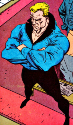 (Daredevil I#334) - Bushwacker was hired by Jenkins, a rich businessman, to hunt down the new Daredevil (secretly the same as the old Daredevil). Bushwacker found Daredevil questioning a drug dealer and prepared for battle.