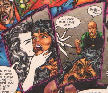 (Doctor Strange: Sorcerer Supreme#56) - Imei and Wong saw a news report of a masked vampire killing a man. Seeing an artist's sketch of the murderer they were sure it was Doctor Strange's brother Victor. With the absence of Doctor Strange they decided to do something about Victor themselves. They visited Morgana Blessing to see if Victor was with her and were attacked by her as she intended to kill Victor after his recent actions. Doctor Strange's astral form possessed Wong to interrogate Morgana about Victor's whereabouts, but he had apparently left her with his coffin to go hunting for criminals days ago. Imei just accepted the fact that Strange possessed her future husband. Strange eventually found Victor, who committed suicide with a stake through the heart because he realized that he had become a monster. Morgana tried to commit suicide as well to join Victor in the afterlife, but Imei stopped her because it wasn't what Victor would've wanted.