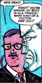 (Journey into Mystery I#47/1) - When Craine's astral form returned to his home, he saw Sanders talking with the police and a doctor...and the doctor pronounced Craine to be dead! After realizing that his battle against Burton had put too much of a strain on his physical body, Craine's sobbing astral form pleaded with the doctor to do something, but his cries were unheard.