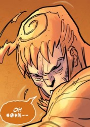 (Silver Sable and the Wild Pack#7) - The Wild Pack fought against Cathode's robots, guards and weapons, but they ended up shrunk down and trapped behind a force field. Crippler grew claustrophobic while also going through nicotine withdrawal, but Chen slapped a lit cigarette out of his mouth. Deathlok saved the group and kept the shrunken mercenaries in his pocket until they were restored to normal size, then they returned the fight to the guards. As they gathered the stolen artifacts toward the Stealthcraft, Crippler briefly worried that Sable had been killed in an explosion, but she turned out to be okay.