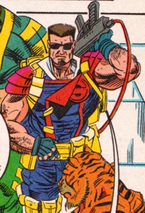(Fantastic Four I#373) - Silver Sable put hundreds of operatives in the streets to look for the Human Torch. When Torch was spotted, Crippler and the others, using fireproof nets and jetpacks, hunted him down. Crippler tried firing an acid grenade at Torch, escalating the fight, and the Human Torch easily defeated the Wild Pack. Sable was furious, demanding better results if the team wanted to get paid.