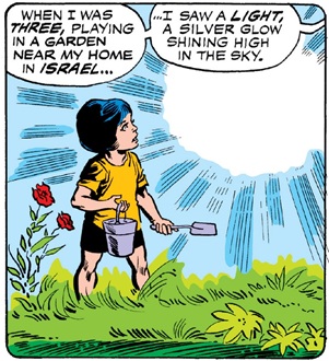 Daredevil I#133, p8, pan5 (young Uri Geller sees silver light in sky)