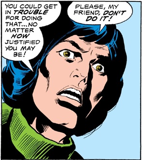 Daredevil I#133, p17, pan5 (Uri Geller urges Daredevil not to use violence against Lt. Rose)