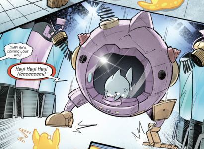 (It's Jeff Infinity Comic#23) - Jeff called his friends Tippy-Toe, Old Lace, Lockheed, Lucky, Alligator Loki, and Chewbacca to help free some pets from a pet store.
