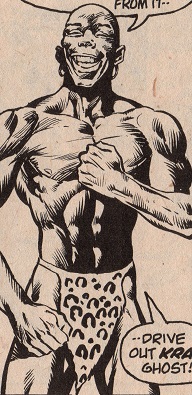 pg. 6, panel 2 (thighs and up, possessed by N'Longa);