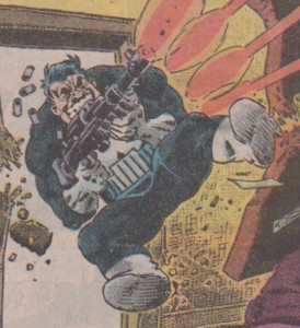 (What The--?!#6/2) - Frank Casket was man with a life, a home, a bank account and a dog named Scruffy. One day he walked his dog in Central Park when mobster named Bulldog kicked the dog so hard it went to outer space (presumably because it never landed). Frank waited a long time, but eventually went. Crime was everywhere and he was ready to take care of it. He bought his weapons supplies at a grocery store, but had to wait for the pack of Juicyfruits (he obviously needed the energy provided by the sugar...there are probably healthier ways). Back home, using the first lesson from a magazine, he started training his left arm, lifting his couch with it pretty soon. He waited for the second lesson to train his right arm as well. When his training was over he begin thinking about a disguise that would strike terror into the minds of criminals. A brick was thrown through his window and hit him. The doctors where sure they would've to amputate when they saw the damage to his skull, but the x-ray gave Frank the idea he was looking for. A skull needed to be on his costume. Back home he started sewing his own costume (he was talented like that), but sewing the word skull on his colorful costume didn't have the effect aspired by him when the criminals laughed at him. It took a few more tries until he finally had the right costume, but still not the right reaction, though he imagined the laughter dying down. He used all his skills from his days as a veterinarian in Vietnam to find out where to find Bulldog. Many died until he called information to get Bulldog's address. He was finally there and walked right through a wall and then right into a hail of bullets. The stay in the hospital was expensive and Frank put the doctors on his list of targets. Frank snuck into Bulldog's home through a window and when he had his target finally in front of him...he kicked his dog so hard it went into space to avenge Scruffy. This was the beginning of Pulverizer's butt-kicking career.