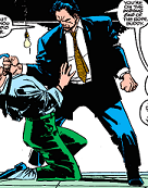 (Daredevil I#268) – As Raymo watched, Hank roughed Billy up, demanding payment. Later, Raymo wore black gloves to confront Billy, who swore he didn't have the money. Raymo chose to leave Billy untouched.